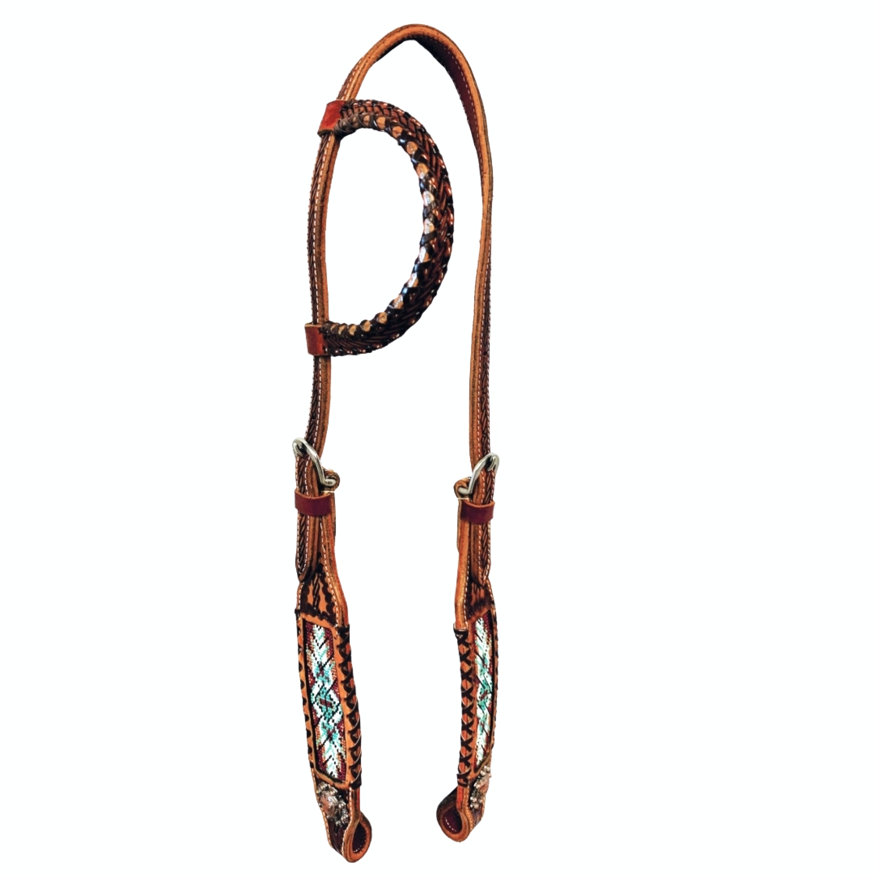 Bride Country Legend doté d’un cuir marron, de perles en motif de plumes colorées et d’une quincaillerie en acier inoxydable.