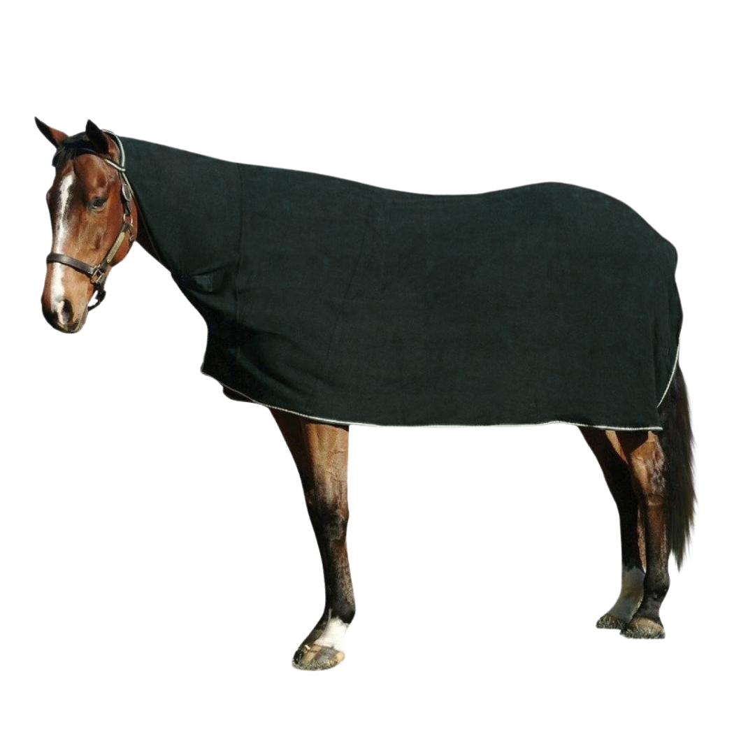 Polaire polyester qui se n'émousse pas, reliure bicolore attrayante, surtoile cachée, encolure contour, attache bride frontale, deux fermetures velcro à l'avant et anneaux en D pour les cuissardes en option