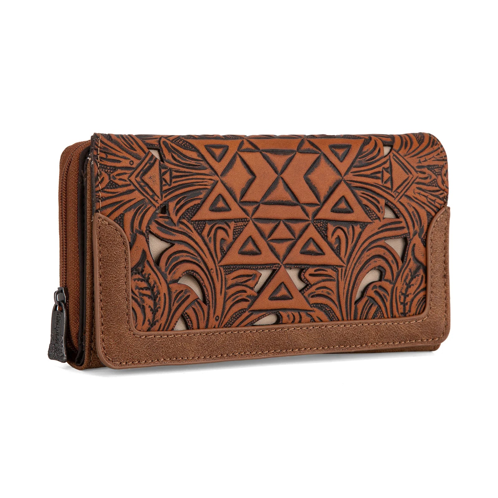 Aztec floral travaillé sur du cuir véritable avec incrustation d’ivoire