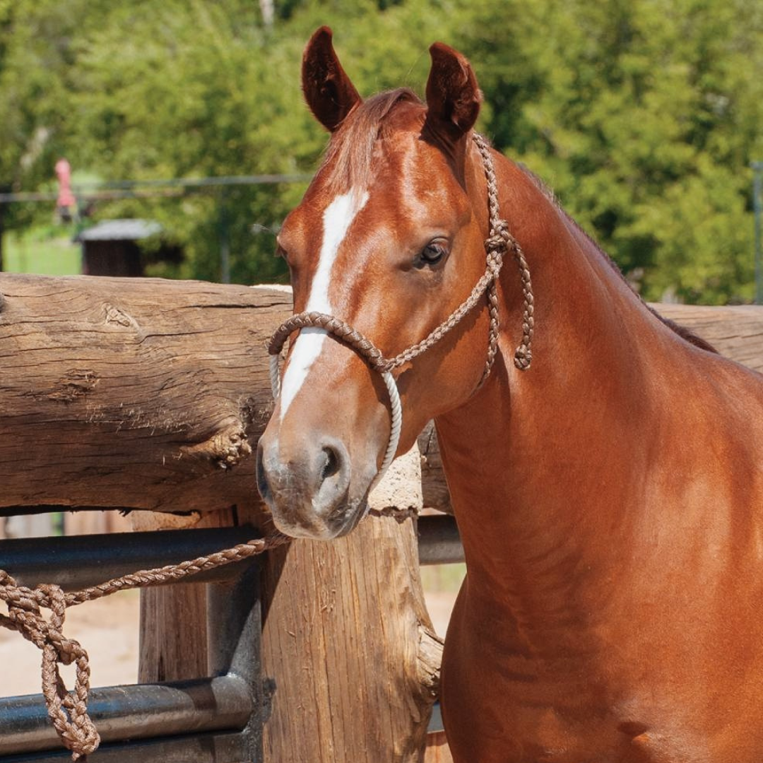 Le Licou avec nez en corde et laisse de 8' brun est fort et résistant. Les couleurs sont hydrofuges et résistantes à la décoloration.