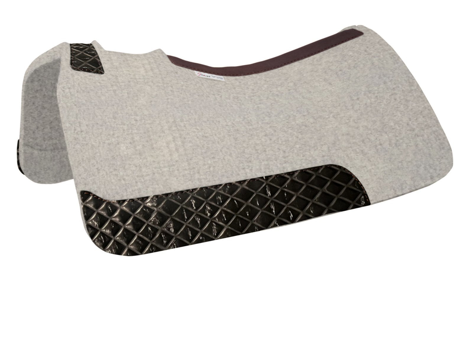 Maintient le cheval confortable et la selle en place. Le feutre de laine vierge 100% pure évacue l'humidité, se nettoie facilement, stabilise la selle et réduit le sanglage. Bandes de cuir véritable pour protection et durabilité.