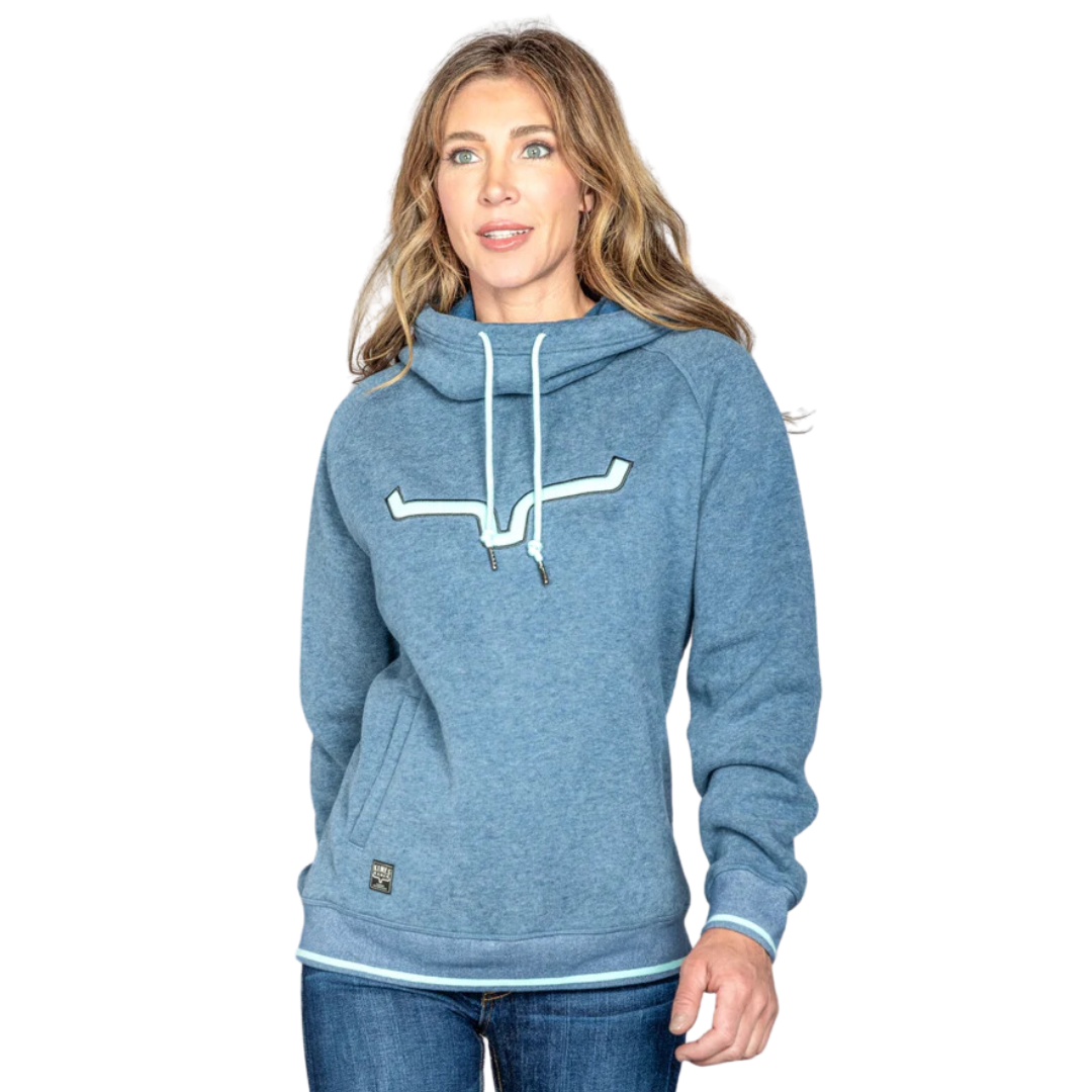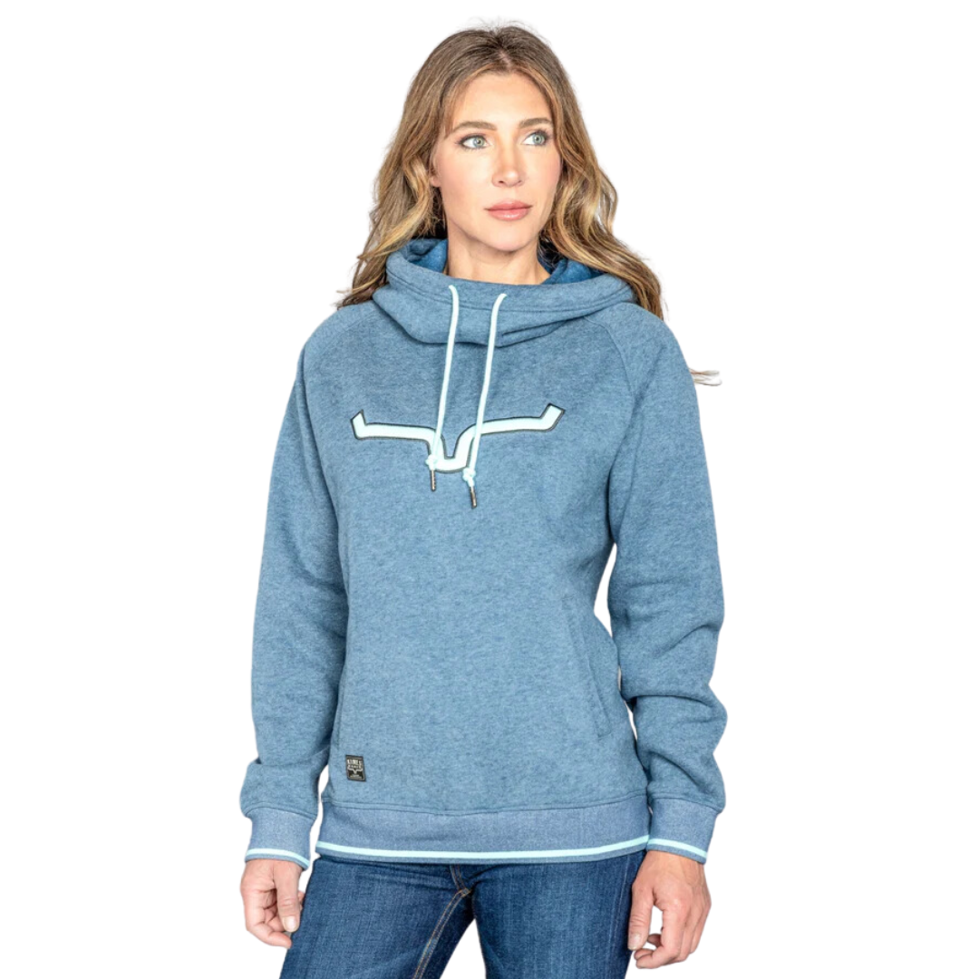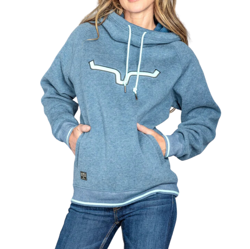 Détails : Manches longues, capuche ajustable avec cordons noués, poche kangourou avant, bande sur le bas et les manches, grand logo brodé en forme de cornes sur la poitrine, petit logo Kimes Ranch près de la poche, capuche à col drapé