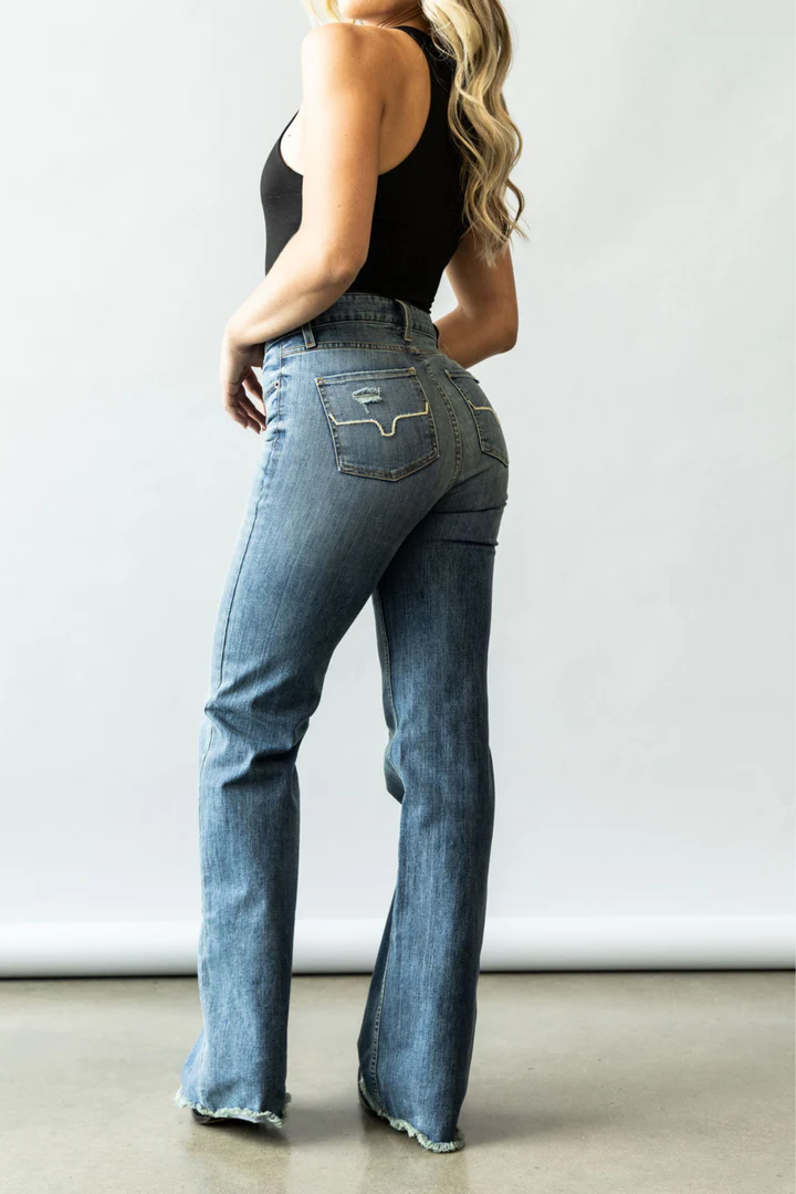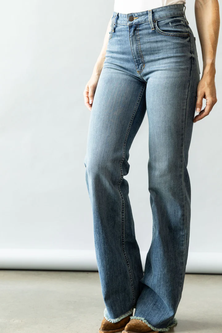 Fit: High Rise, Stove Top, Wide Leg with a Raw Hem