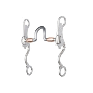 FG SS Brushed Short Spoon Port Bit with Copper Roller. Horse bit by François Gauthier Collection with a brushed stainless finish. High port 5-1/8" mouthpiece with spoon port made of sweet iron and has copper barrels. 7-1/2" medium shank, high purchase and engraved 'S' shank and dots.