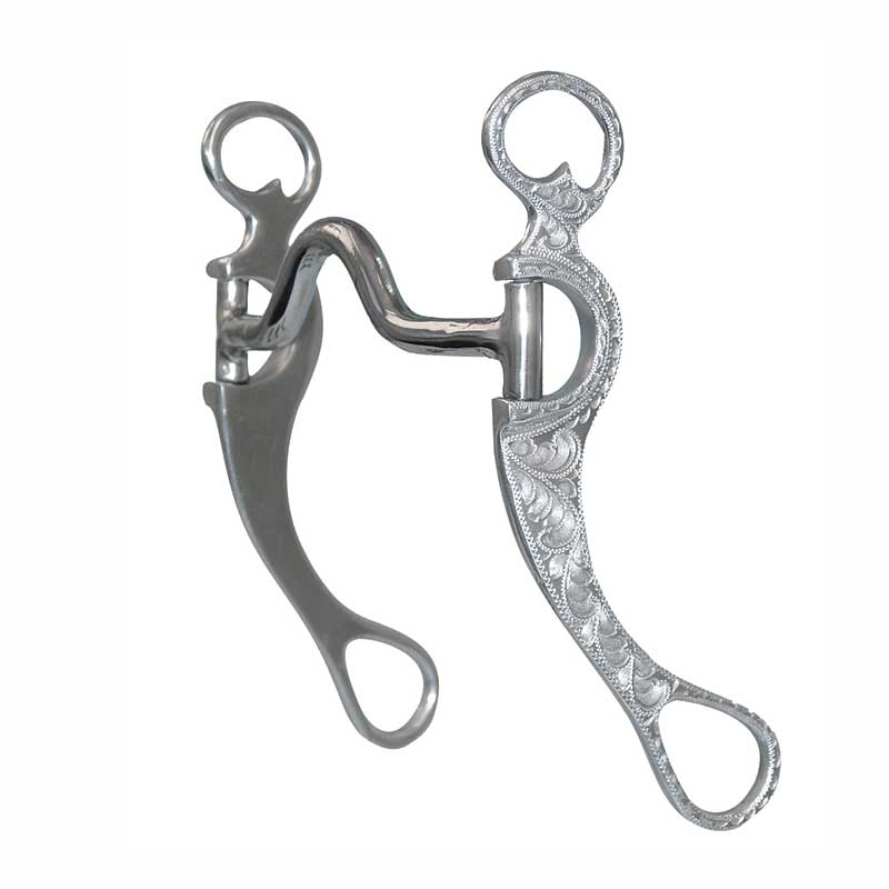 FG Aluminum Engraved Medium Port Bit with Medium Shank Bit is a horse bit from François Gauthier Collection, made with aluminum. 5" (127mm) medium port sweet iron curved mouthpiece with copper inlays. 7-1/4" (196mm) medium shank with engraved cheeks. Light and comfortable.
