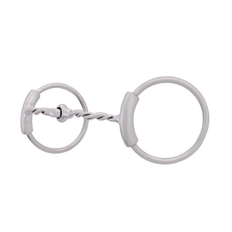 FG SS Brushed Twisted Wire Loose Ring Bit With Sleeves is a horse bit with a brushed stainless finish. Snaffle twisted mouthpiece of 5" with 2-5/8" loose ring with sliding sleeves.