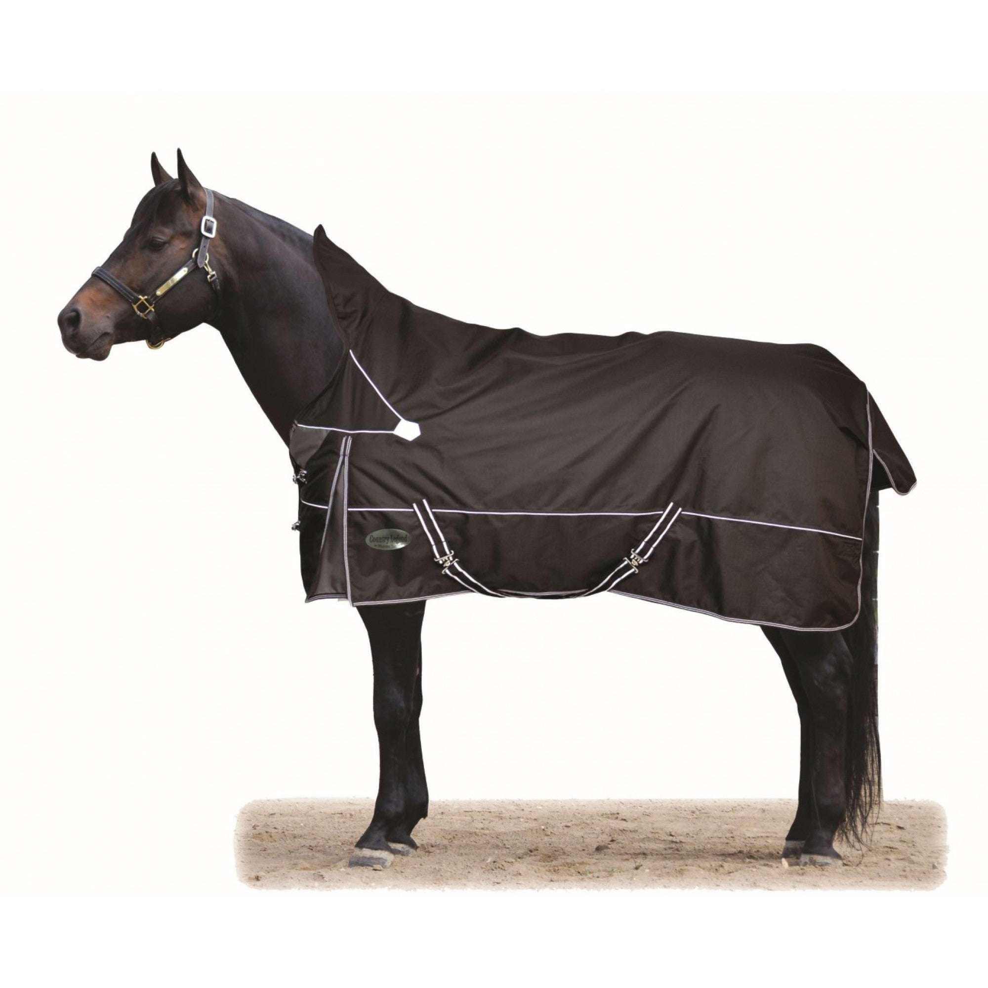 Extended neck styling offers improved coverage and helps to protect the sensitive wither area from added pressure. A stretchy, softshell neck gusset allows the horse to move without restriction. Features “Silhouette” contoured Quarter Horse fit.1200D ripstop polyester outer shellWaterproof, breathable, taped seams 280 grams of thermal insulationSilky polyester liningShoulder and...