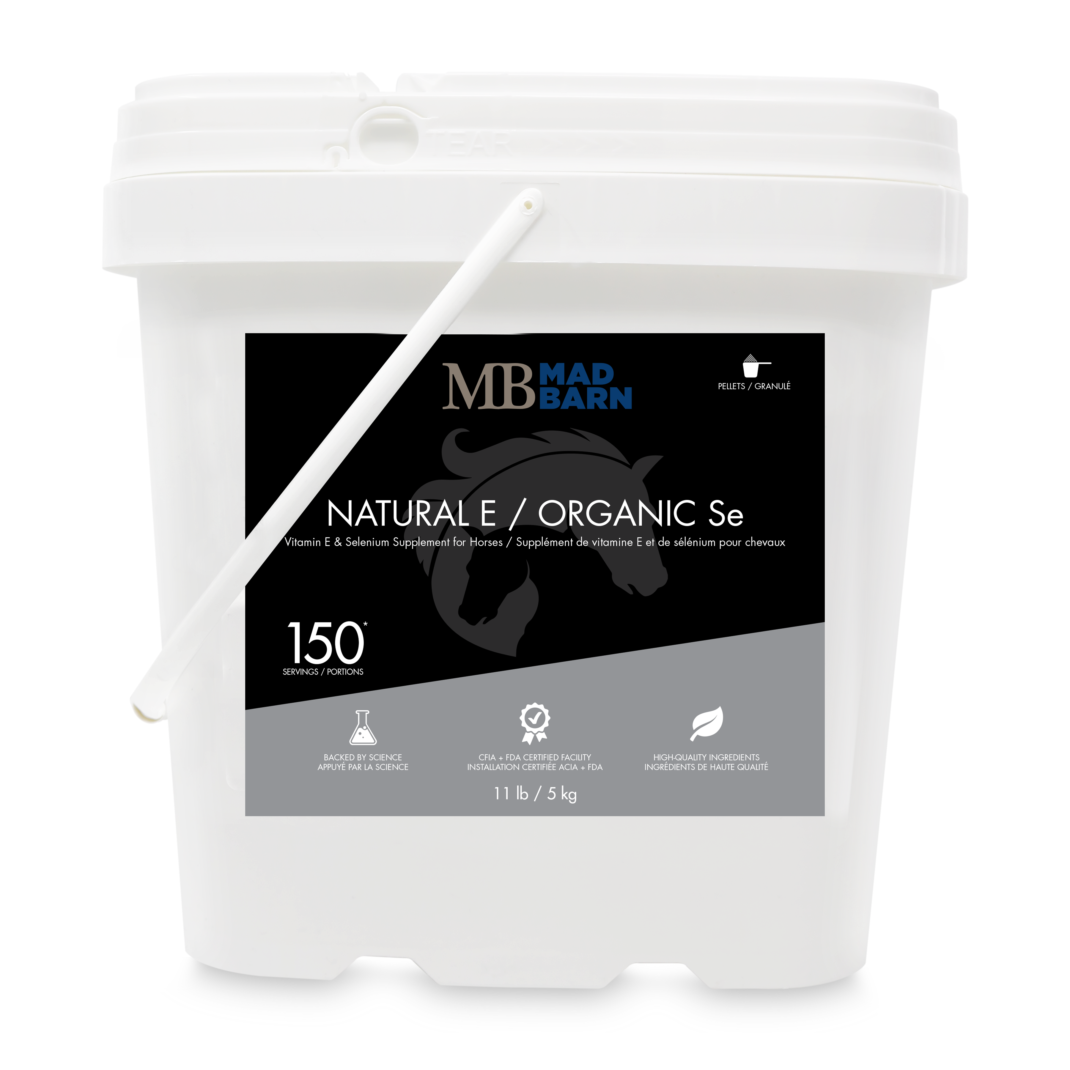 Mad Barn’s Natural E/Organic Se is a pelleted source of supplemental Natural Vitamin E and Organic Selenium that ensures optimal antioxidant status in your horse.