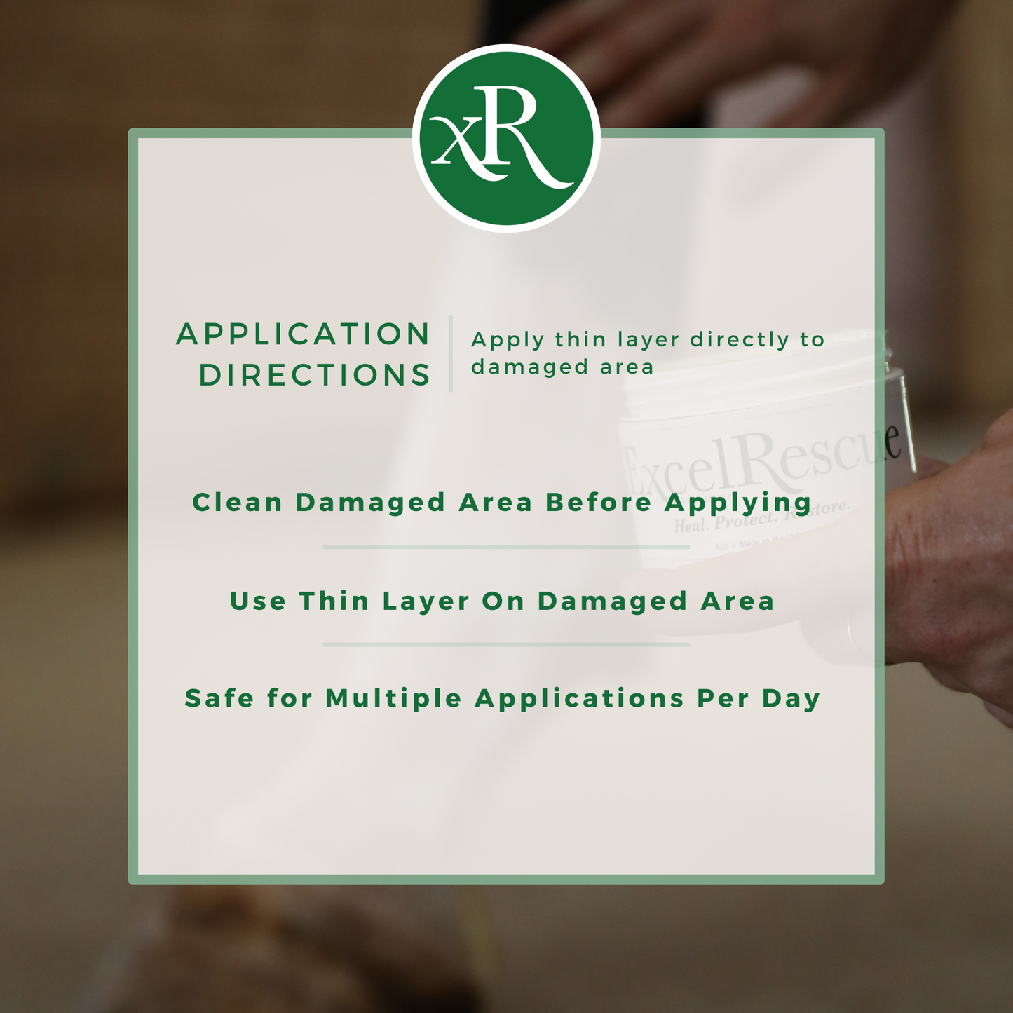 ExcelRescue is the magic combination to provide maximum healing power. While ExcelRescue is at work on the wound ExcelEQ is working within the horses body to assure the immune system has the needed boost to fight and the Vitamin E as well as Omega 3 within the horses body aid in the healing process.