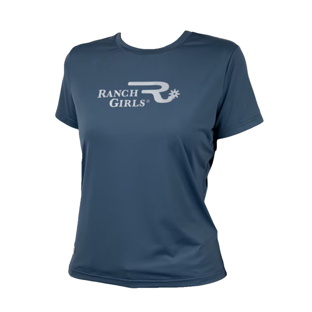 The new Ranch Girls T-shirt FRIDA smoke blue is the ultimate summer shirt for all western riders. Made from 88% polyamide and 2% spandex, the fabric feels cool and smooth on the skin and dries quickly. This sporty western shirt is available in three fashionable colours: Smoke Blue, Blackberry and Stone Blue. The Ranch Girls Brand logo is finished with a silver reflective print and gives the shirt a special accent.