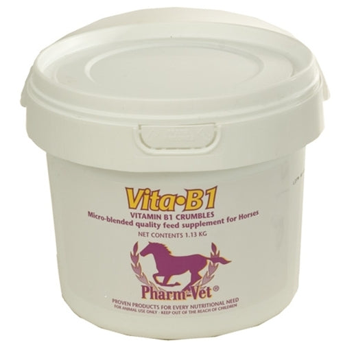 VITA B-1 is Vitamin B1 (Thiamine) supplement for horse care that is necessary for normal growth and skeletal muscle development. Deficiency of Vitamin B1 may cause nervousness and appetite loss in horses during times of stress.